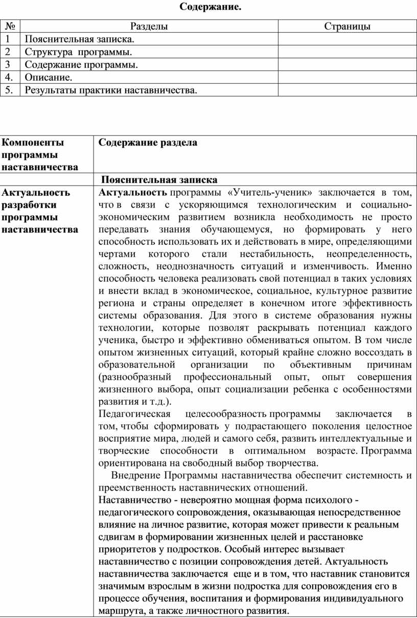 1.Введение в актуальность программы наставничества как компонента образовательной деятельности в образовательной организации. Пояснительная записка. |