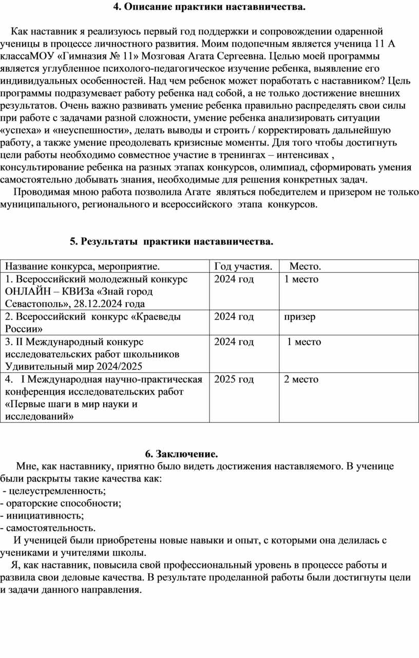4. Описание практики наставничества. |