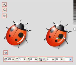 3) Цвет тела жука. Копируем эллипс формы тела 2 раза, масштаб одной копии 95%, другой - 60%. Убираем у всех абрис (это необходимое условие для интерактивного перетекания). Заливаем их соответственно цветами палитры CMYK (35;100;98;2), (7;95;93;0), (0;60;80;0).
