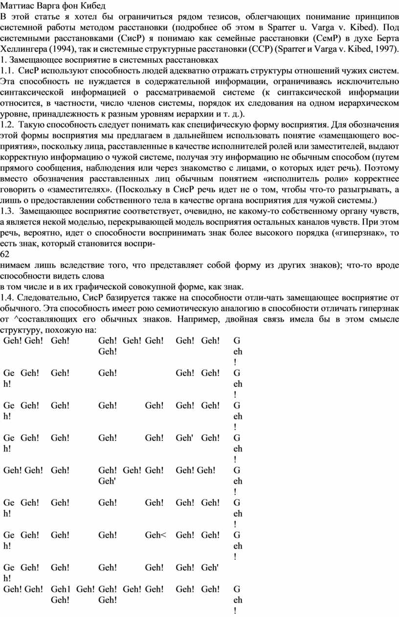 Маттиас Варга фон Кибед. Заметки о философских основах и методических предпосылках системной работы методом расстановки............................................................ 62