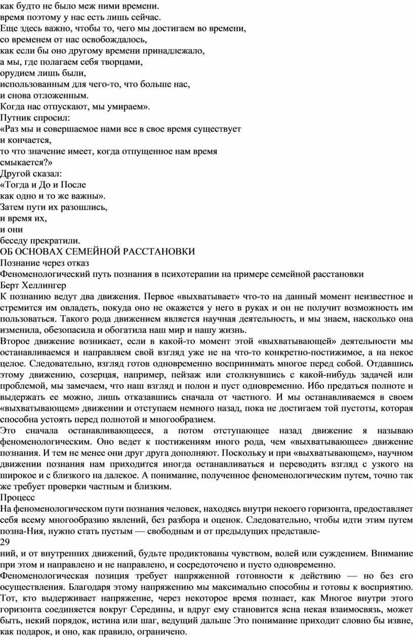 Берт Хеллингер. Познание через отказ. Феноменологический путь познания в психотерапии на примере семейной расстановки .......................................................................... 29