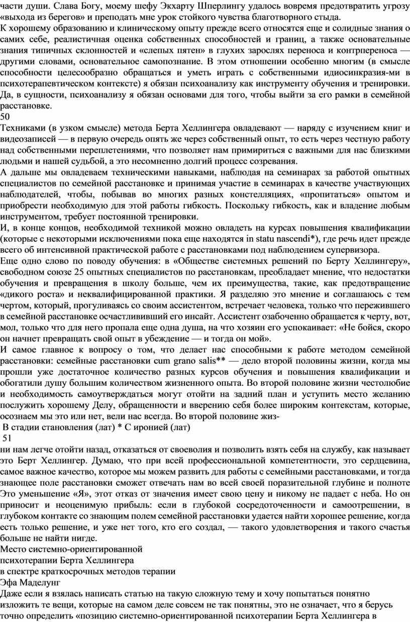 Эфа Маделунг. Место системно-ориентированной психотерапии Берта Хеллингера в спектре краткосрочных методов терапии...........................................52
