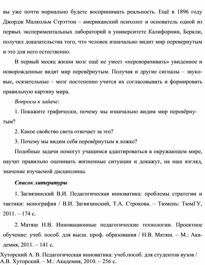 3. Хуторский А. В. Педагогическая инноватика: учеб.пособ. для студентов вузов / А.В. Хуторский. – М.: Академия, 2010. – 256 с.