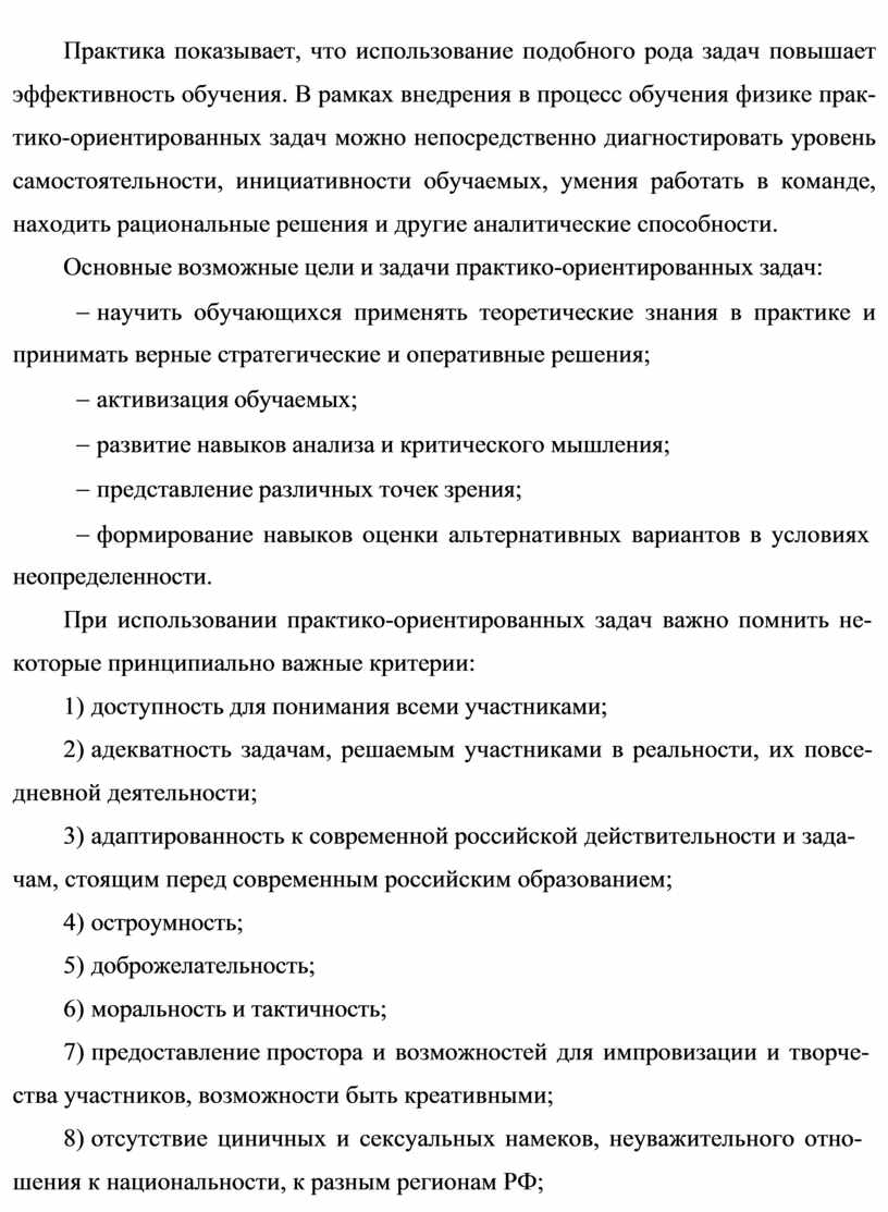 При использовании практико-ориентированных задач важно помнить не- которые принципиально важные критерии: