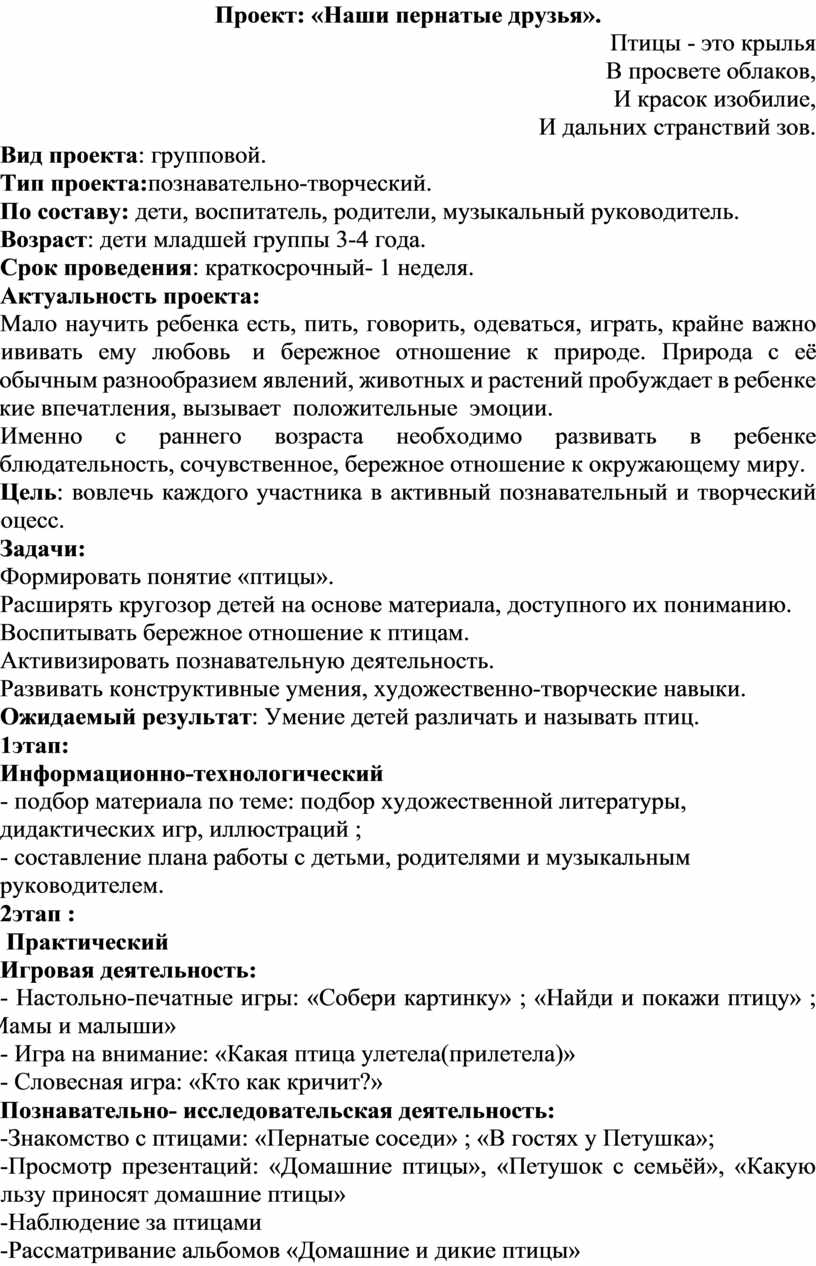 Проект: «Наши пернатые друзья».
