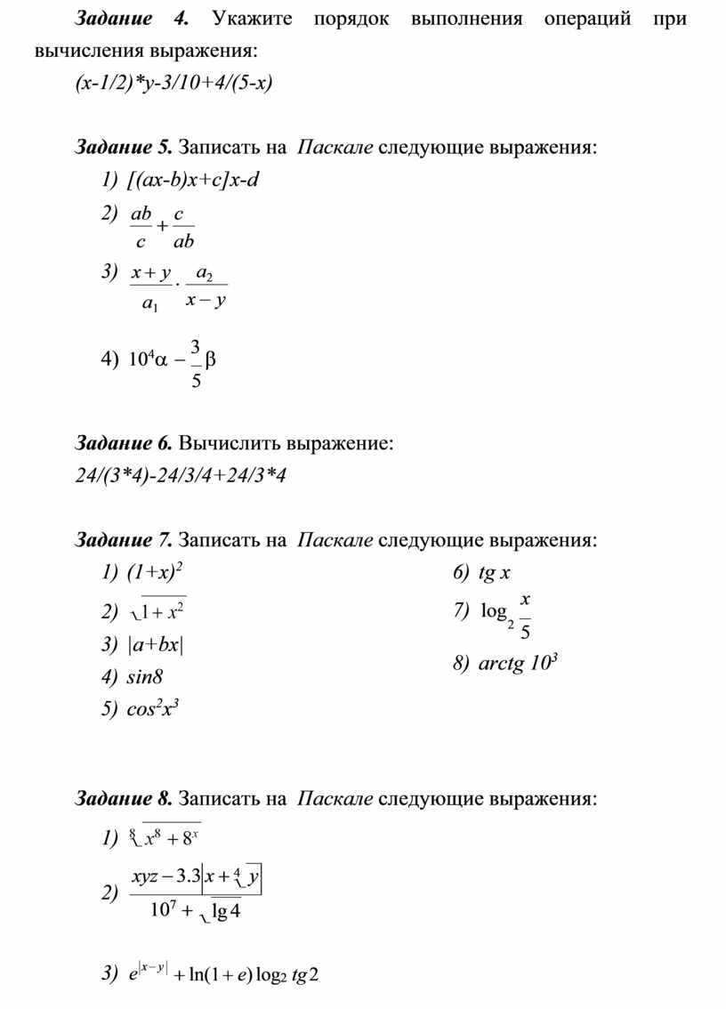 Задание 4. Укажите порядок выполнения операций при вычисления выражения: