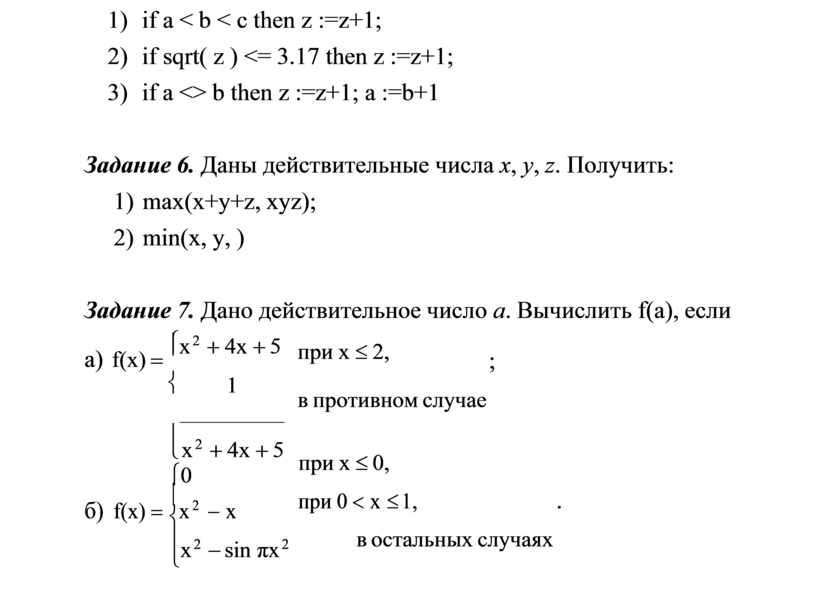 Задание 6. Даны действительные числа x, y, z. Получить: