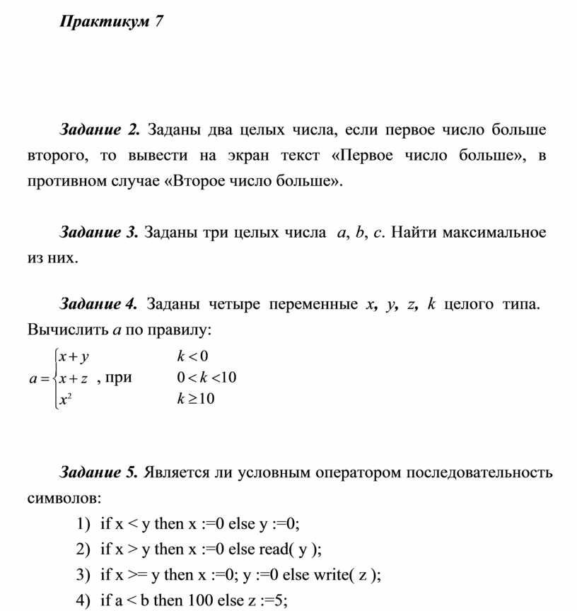 Задание 4. Заданы четыре переменные x, y, z, k целого типа.