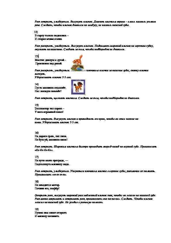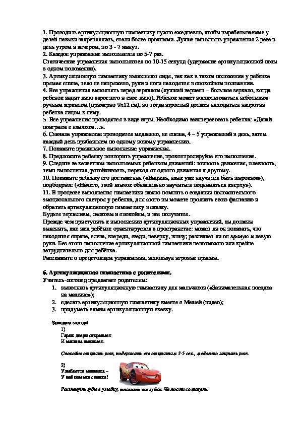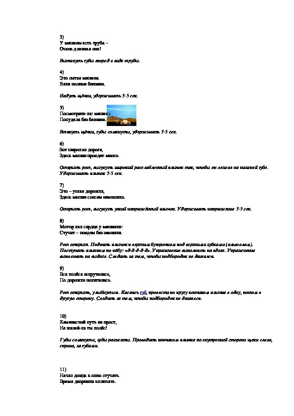 для язычка», «Артикуляционная гимнастика «Занимательная поездка на машине»,