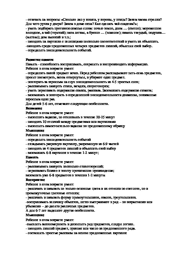 Так для детей 45 лет, характерны следующие особенности высших психических функций.