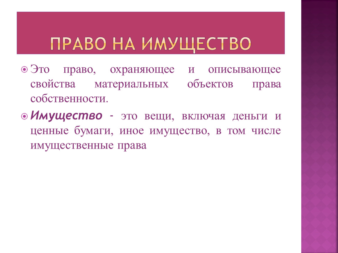 Это право, охраняющее и описывающее свойства материальных объектов права собственности.