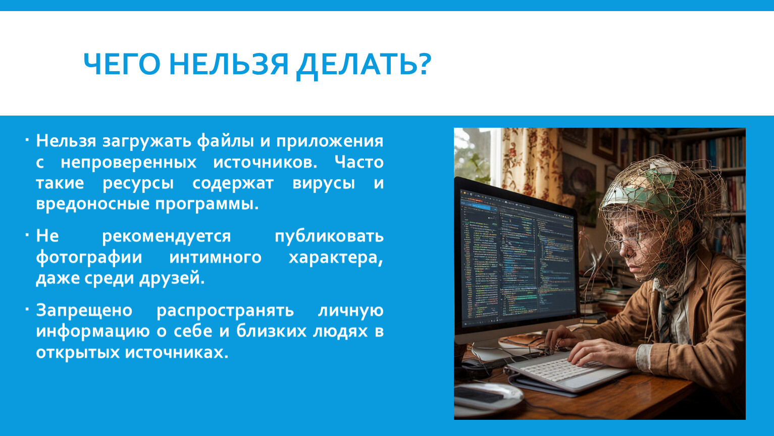 Объясняйте ребенку последствия необдуманных действий в интернете. Это касается размещения фотографий, отправки сообщений незнакомым людям, загрузки файлов и приложений сомнительного происхождения.