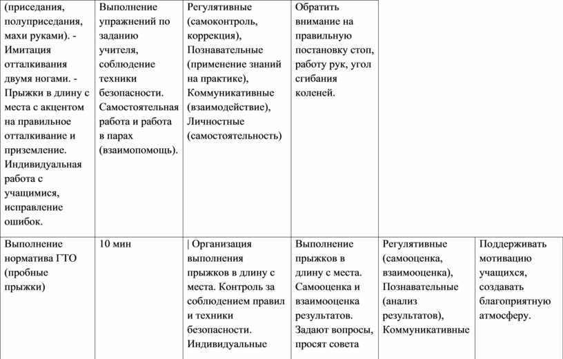 • Умение выполнять прыжок в длину с места с соблюдением техники безопасности.