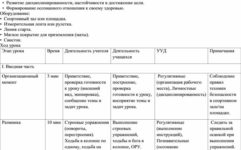 Цель: Освоение техники выполнения прыжка в длину с места двумя ногами, ознакомление с правилами выполнения и техникой безопасности при выполнении данного норматива ГТО.
