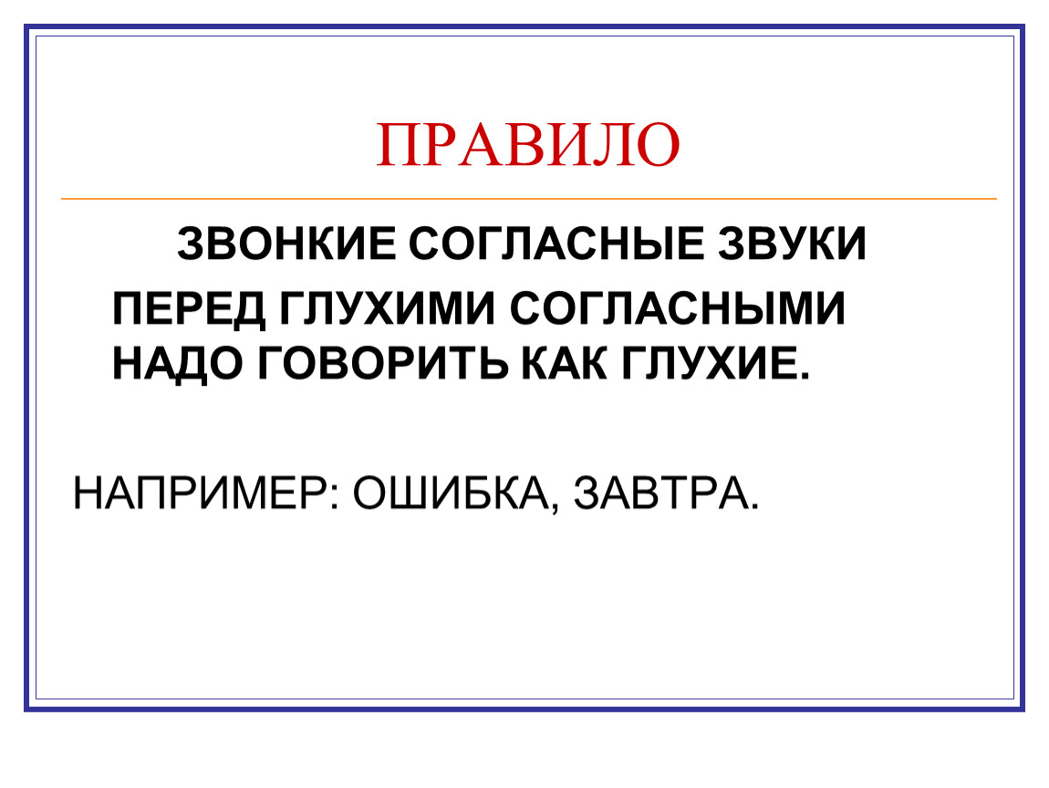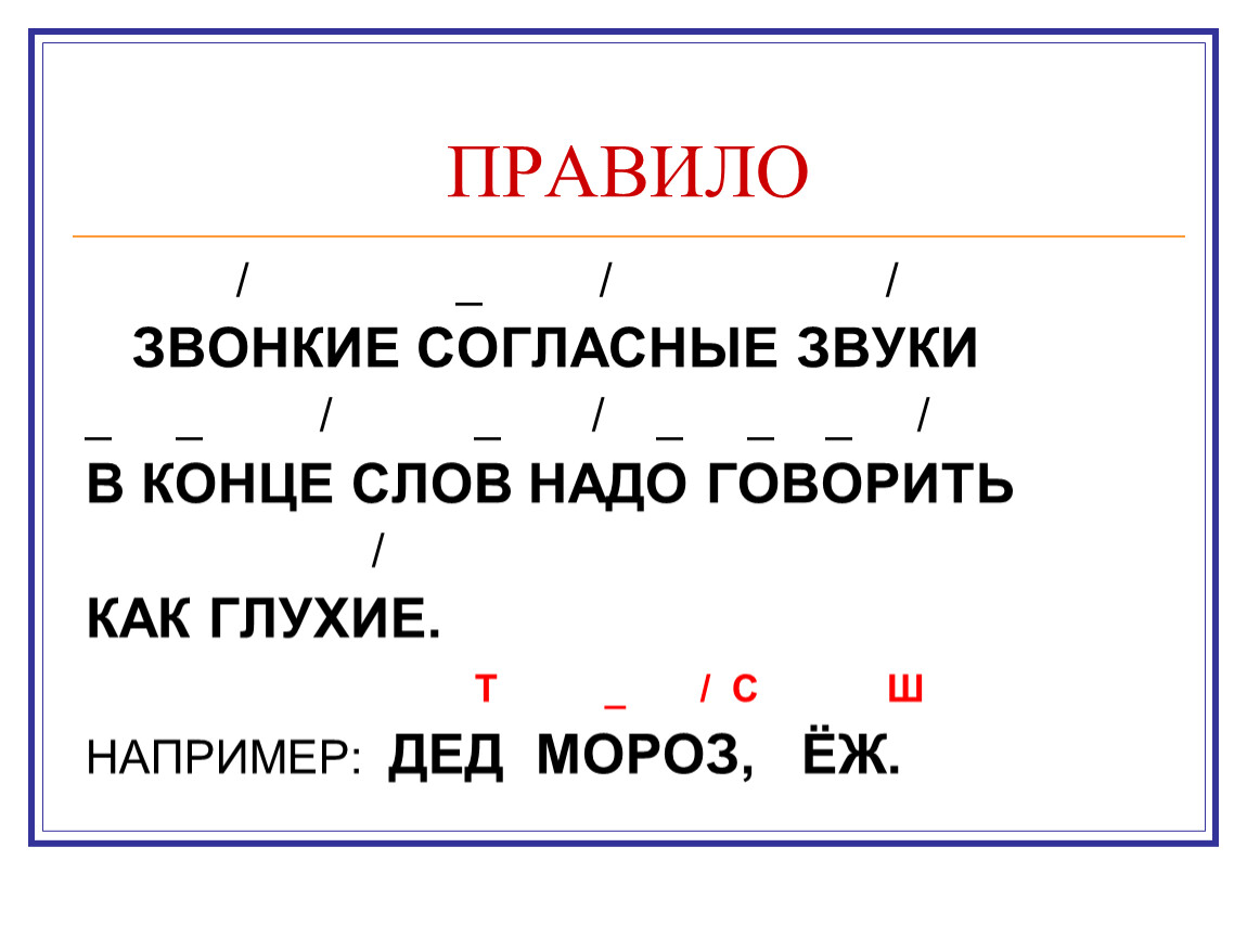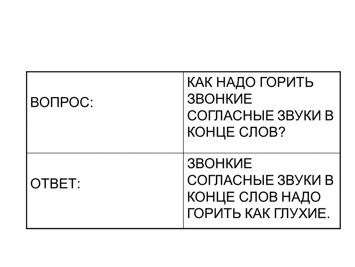 | ЗВОНКИЕ СОГЛАСНЫЕ ЗВУКИ В КОНЦЕ СЛОВ НАДО ГОРИТЬ КАК ГЛУХИЕ. |