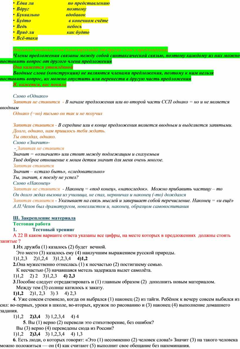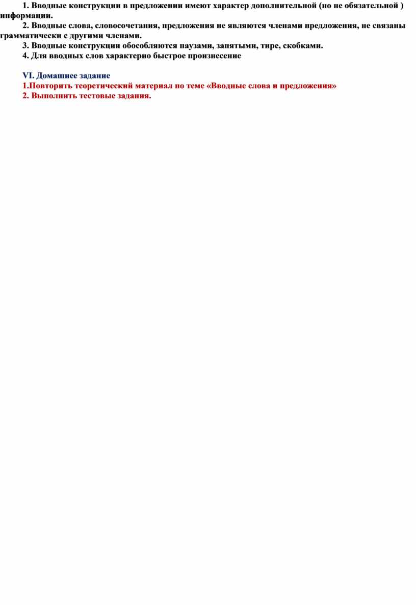 1.Повторить теоретический материал по теме «Вводные слова и предложения»