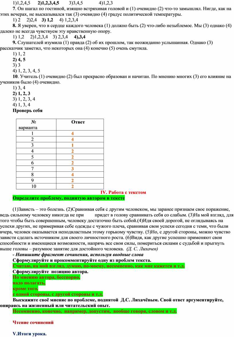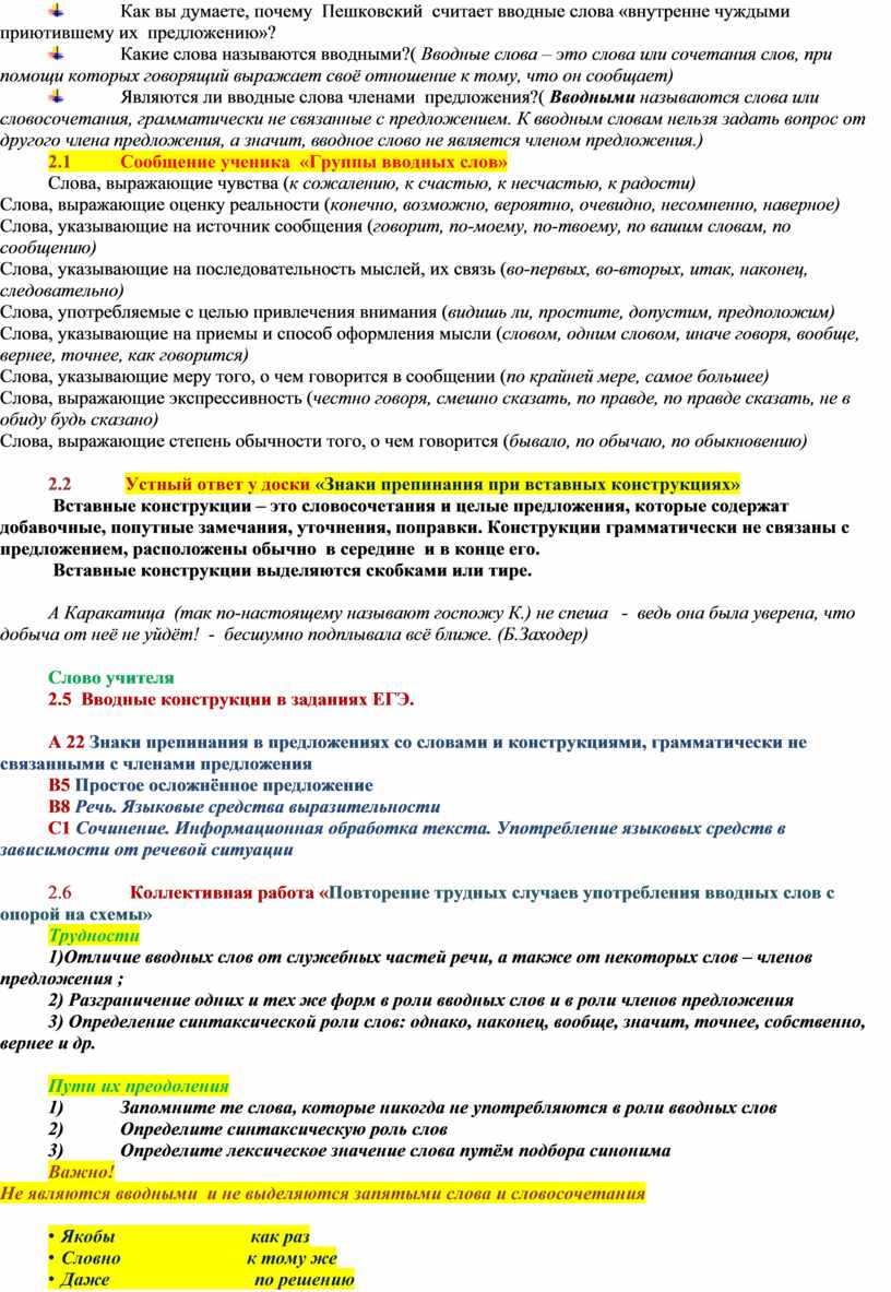 2.6 Коллективная работа «Повторение трудных случаев употребления вводных слов с опорой на схемы»