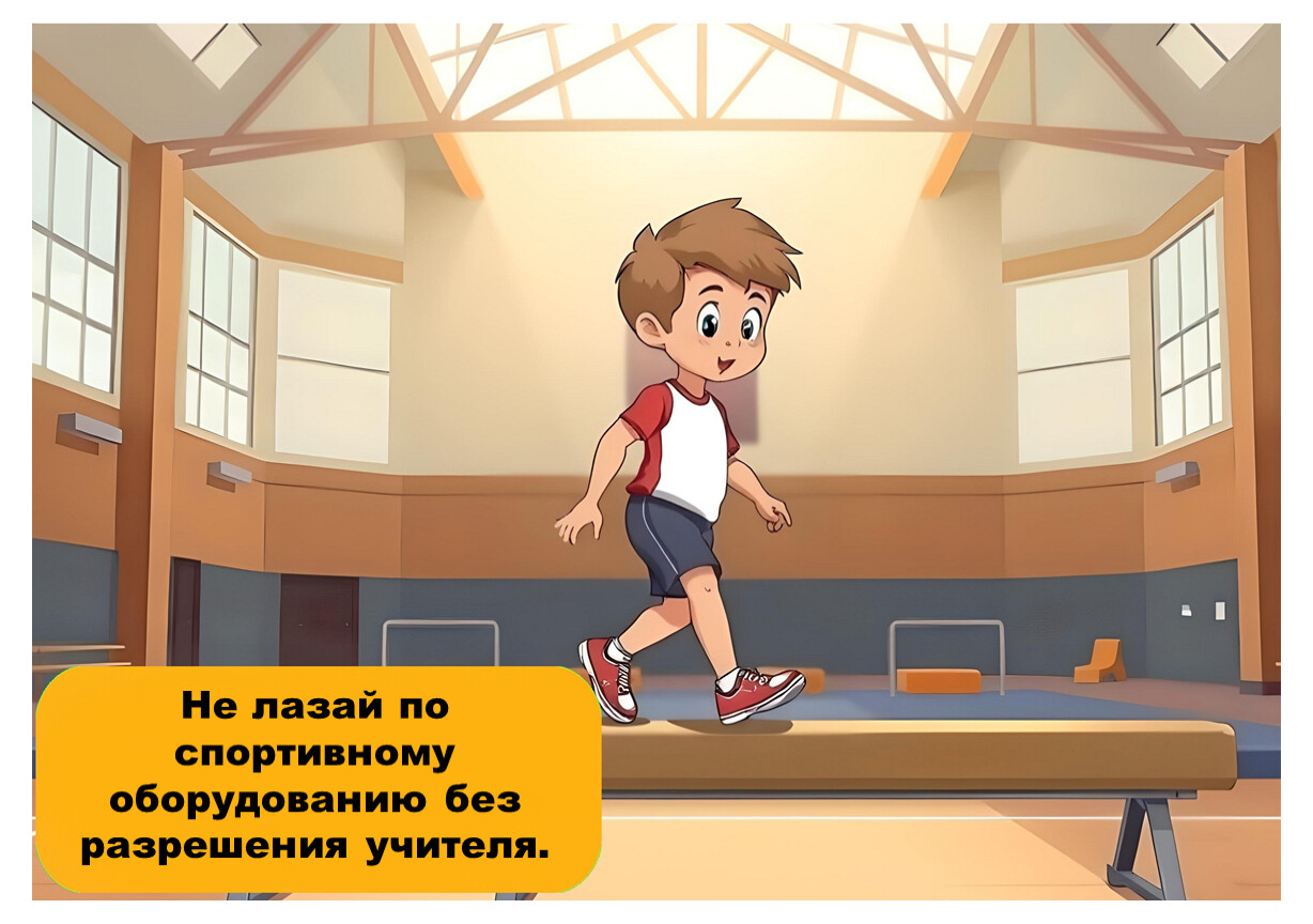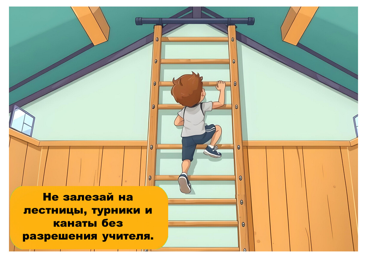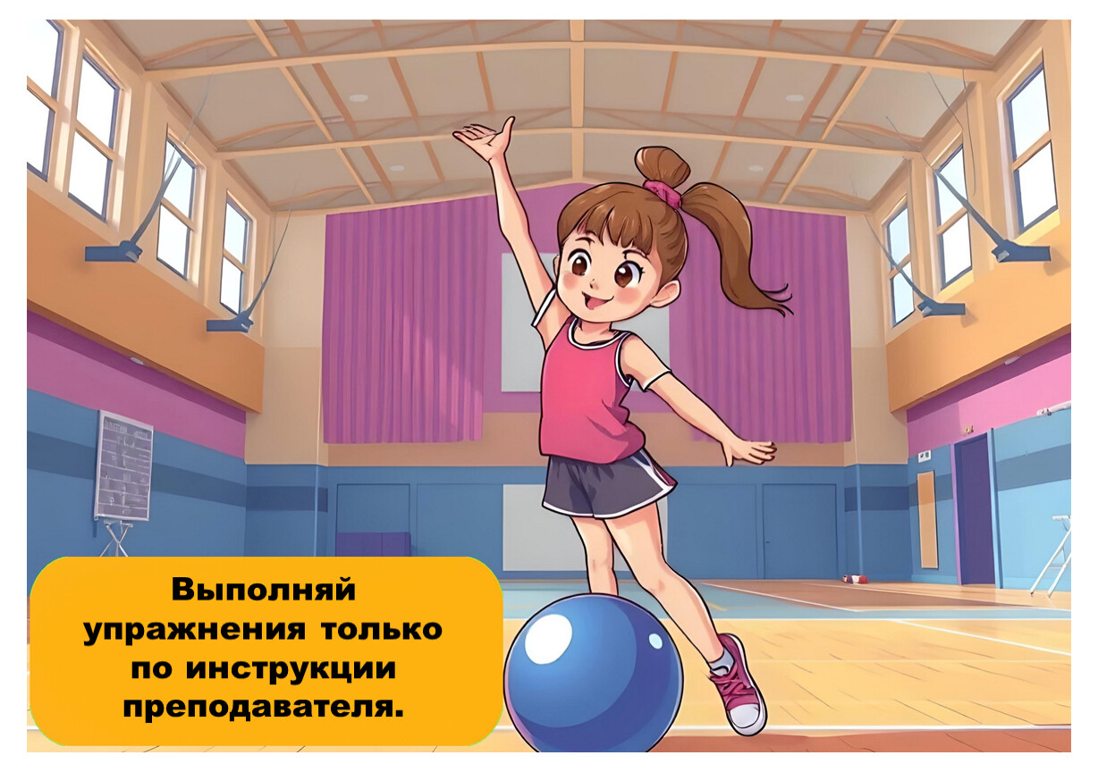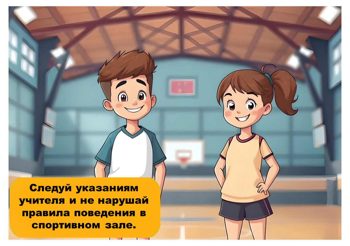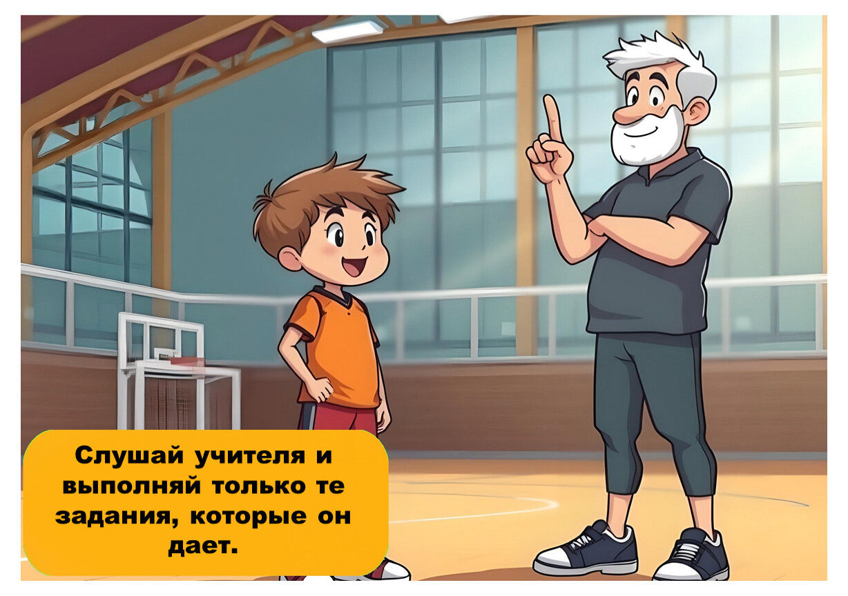 Следуй указаниям учителя и не нарушай правила поведения в спортивном зале.