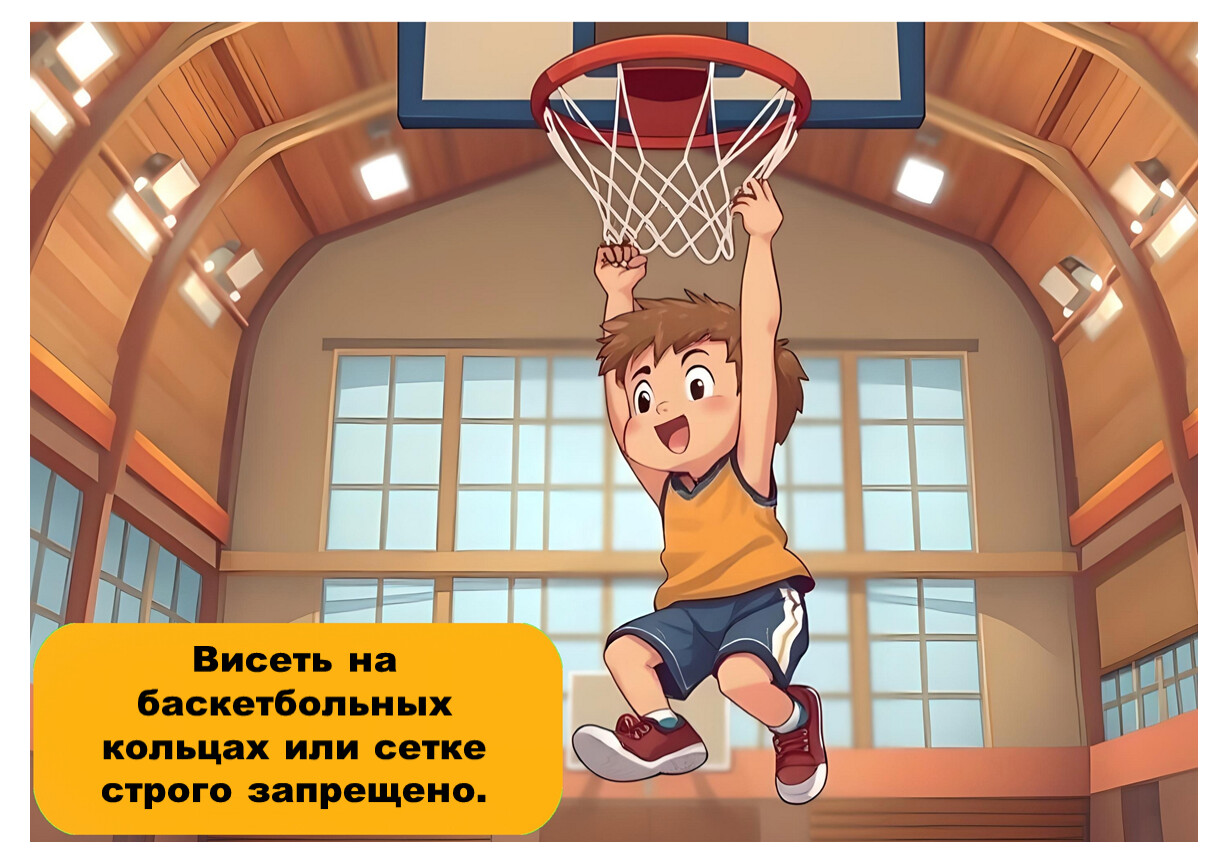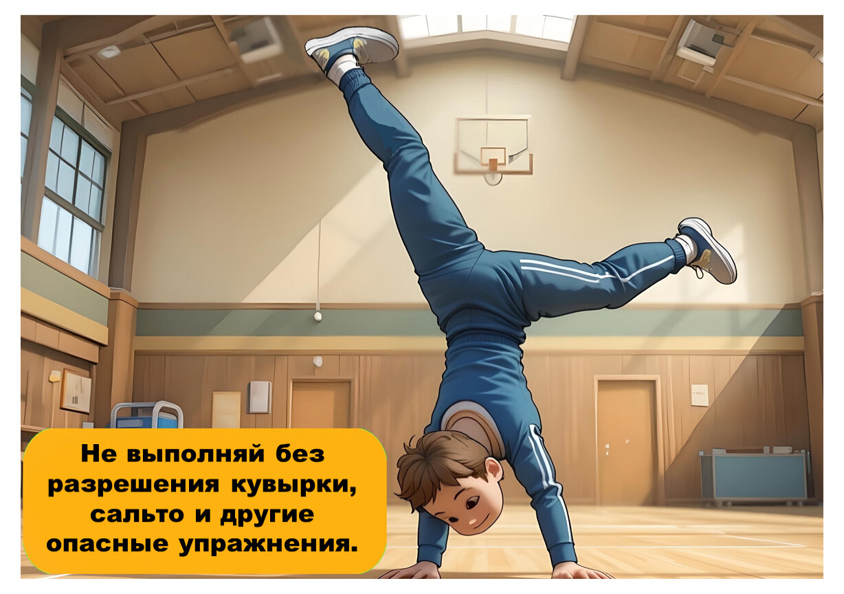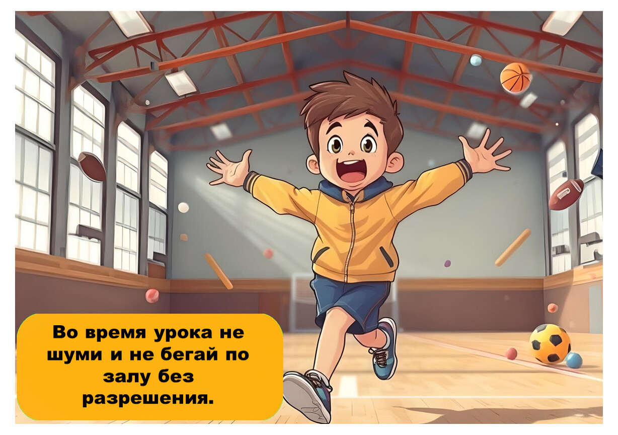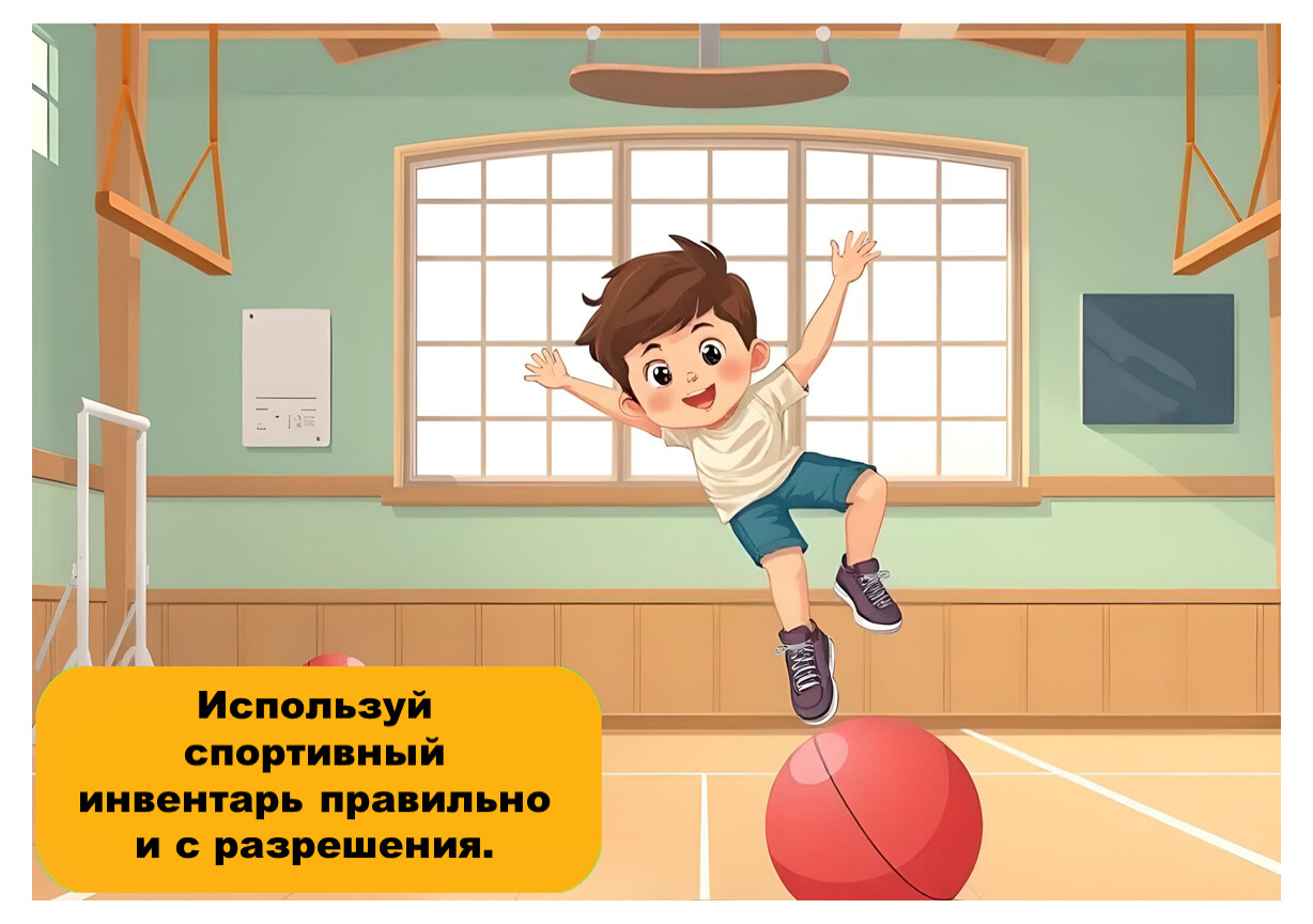 Следуй указаниям учителя и не нарушай правила поведения в спортивном зале.