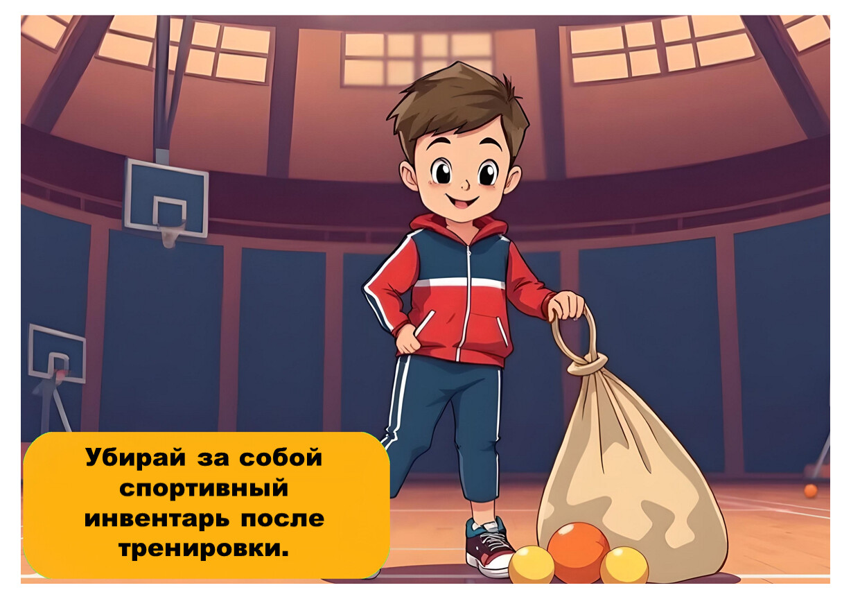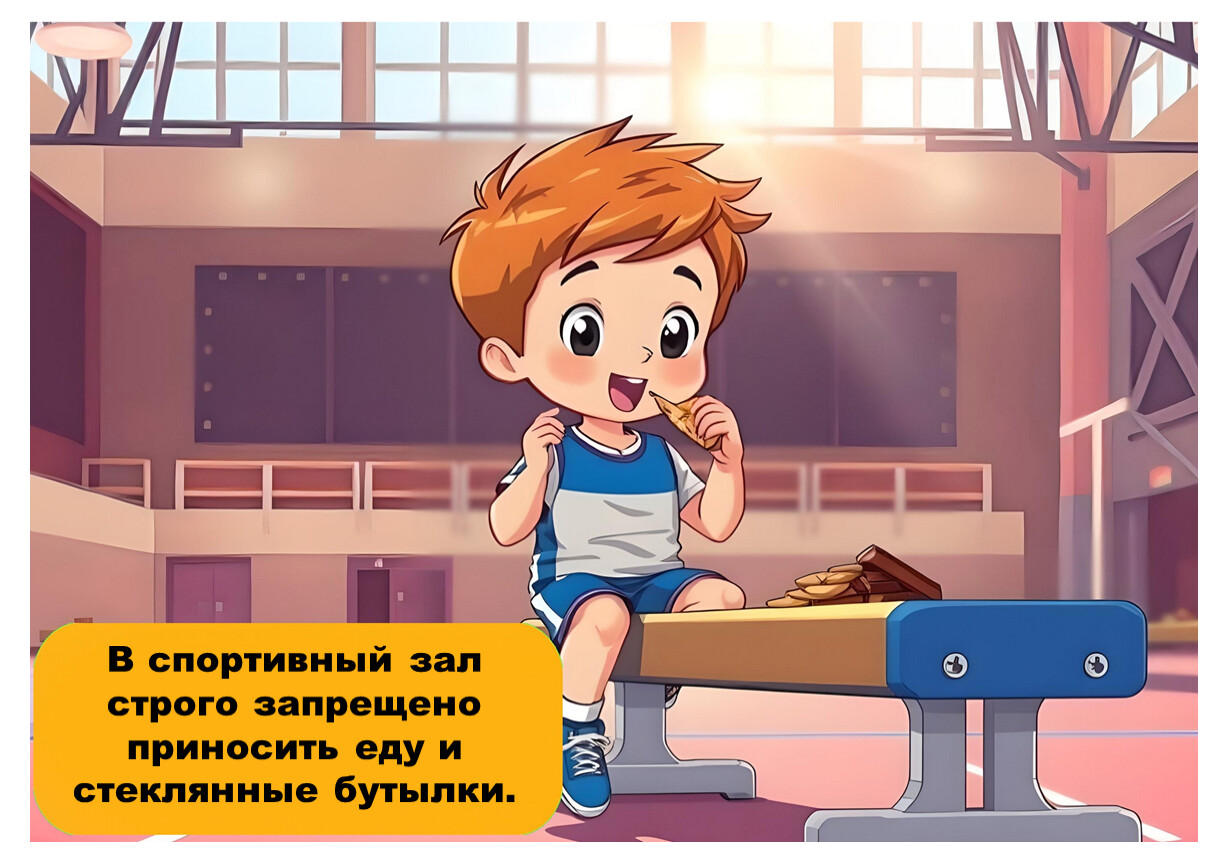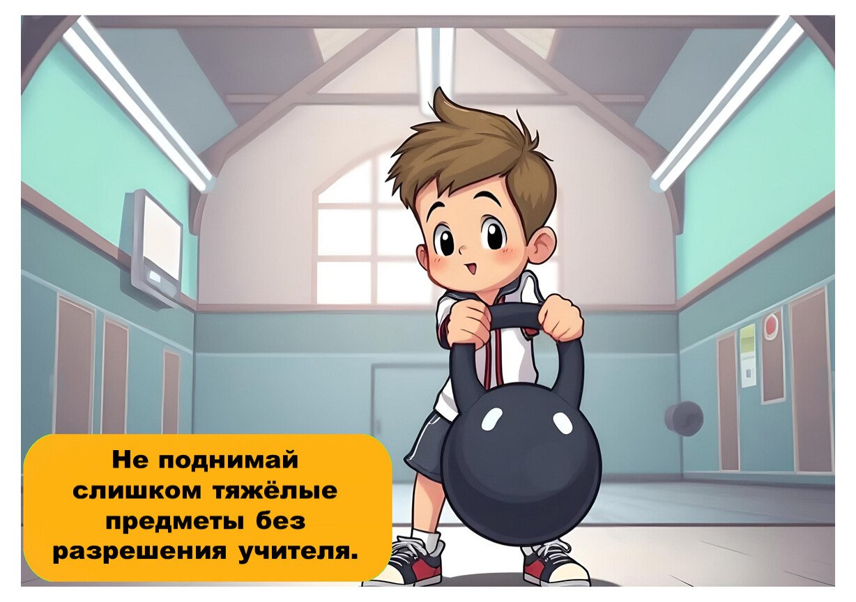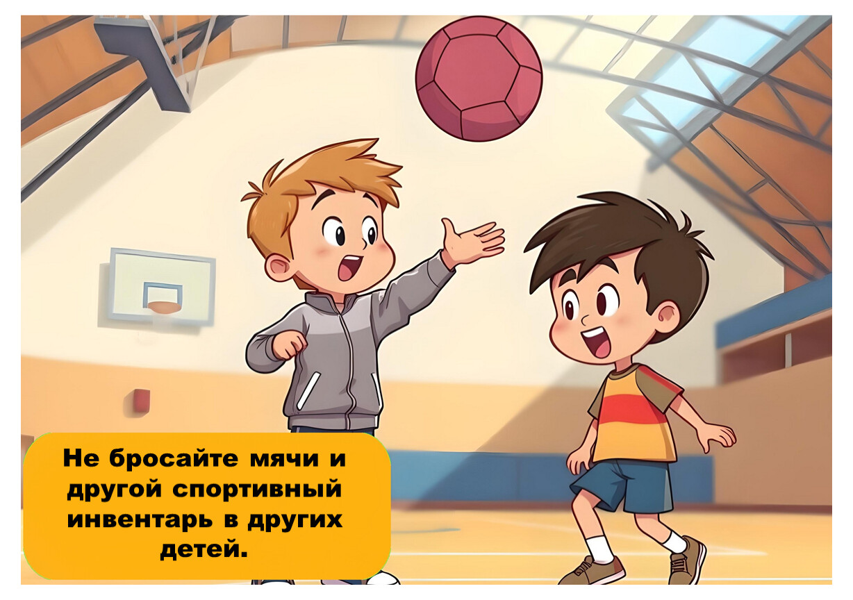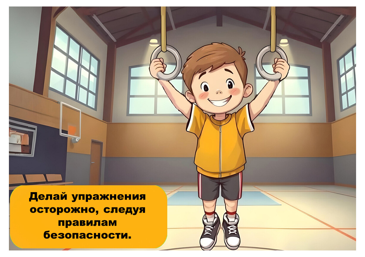 Следуй указаниям учителя и не нарушай правила поведения в спортивном зале.