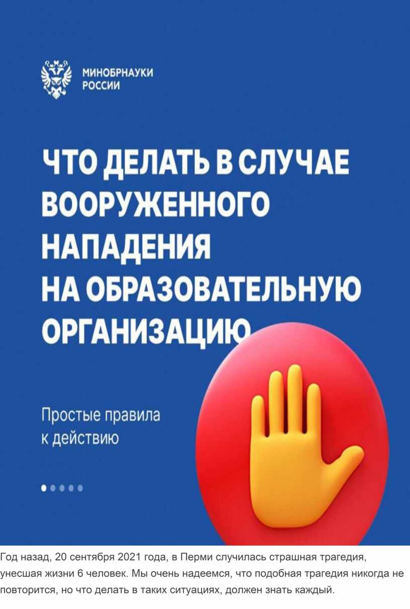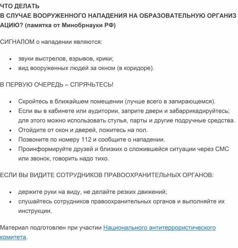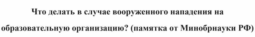 ЧТО ДЕЛАТЬ В СЛУЧАЕ ВООРУЖЕННОГО НАПАДЕНИЯ НА ОБРАЗОВАТЕЛЬНУЮ ОРГАНИЗАЦИЮ? (памятка от Минобрнауки РФ)