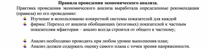 Практика проведения экономического анализа выработала определенные рекомендации (правила) по его проведению:
