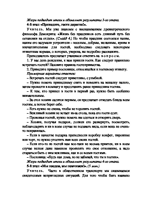 У ч и т е л ь . Перед тем как жюри подведет итог нашего последнего