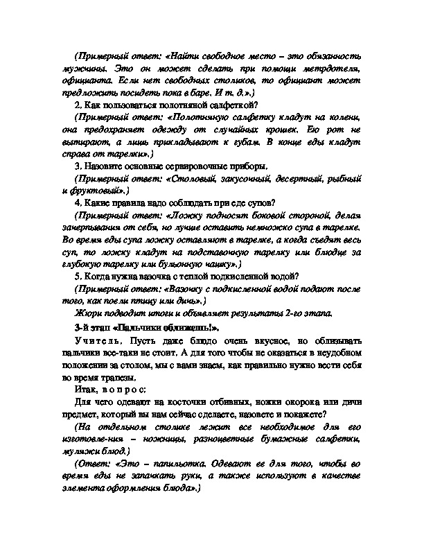У ч и т е л ь . Пусть даже блюдо очень вкусное, но облизывать