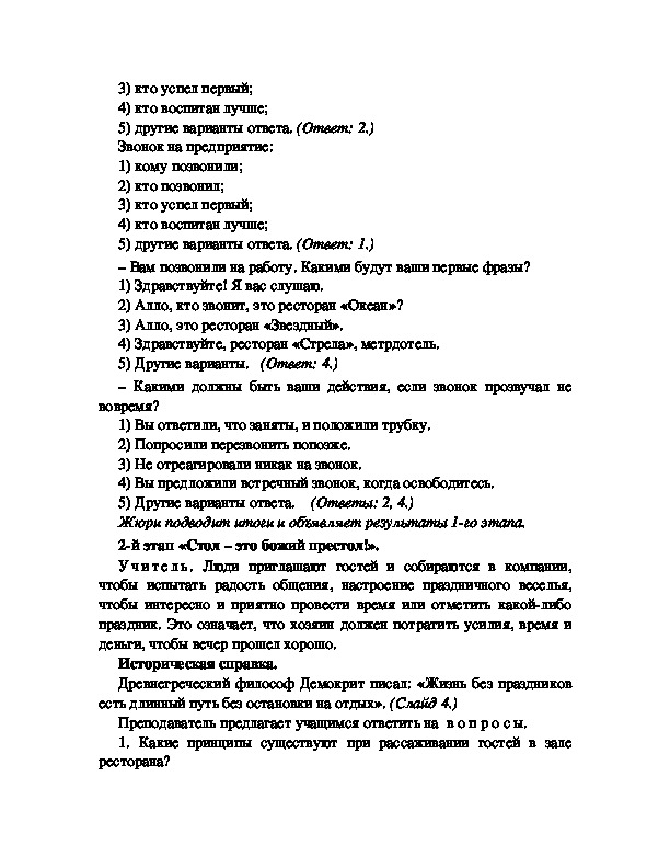 элемента оформления блюда».)Жюри подводит итоги и объявляет результаты 3го этапа.