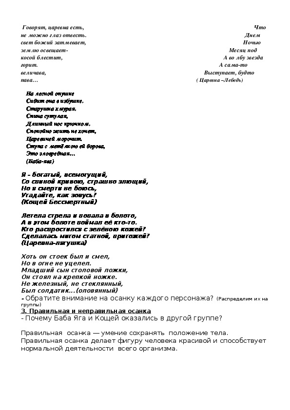 - Обратите внимание на осанку каждого персонажа? (Распределим их на