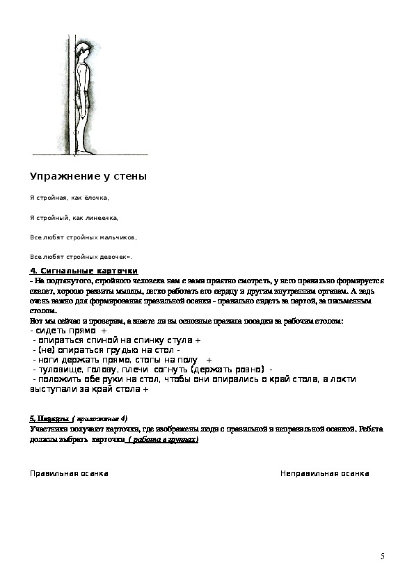 Участники получают карточки, где изображены люди с правильной и неправильной осанкой. Ребята