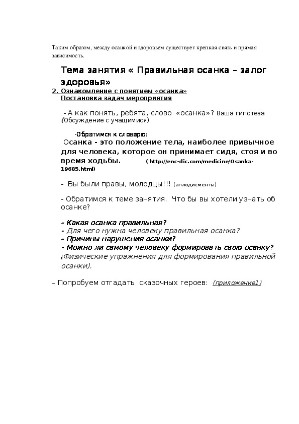 - А как понять, ребята, слово «осанка»? Ваша гипотеза