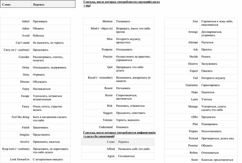 Глаголы, после которых употребляется герундий(глагол + ing)