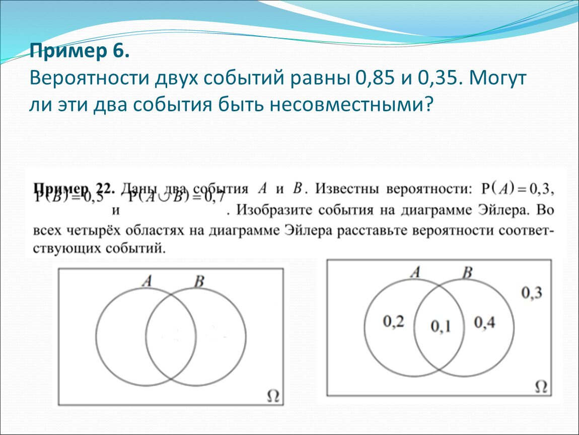 Если события А и В пересекаются, т.е. совместны, то вероятность их объединения можно найти по формуле