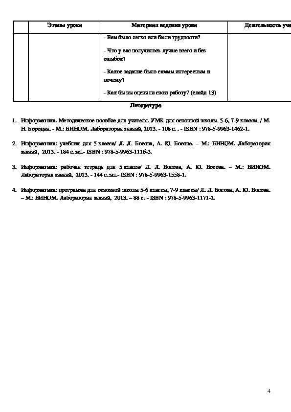 3. Информатика: рабочая тетрадь для 5 класса/ Л. Л. Босова, А. Ю. Босова. – М.: БИНОМ.