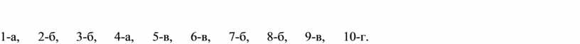 1-а, 2-б, 3-б, 4-а, 5-в, 6-в, 7-б, 8-б, 9-в, 10-г.