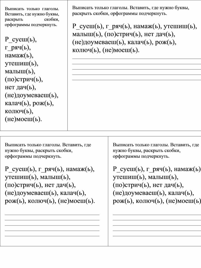 Выписать только глаголы. Вставить, где нужно буквы, раскрыть скобки, орфограммы подчеркнуть.