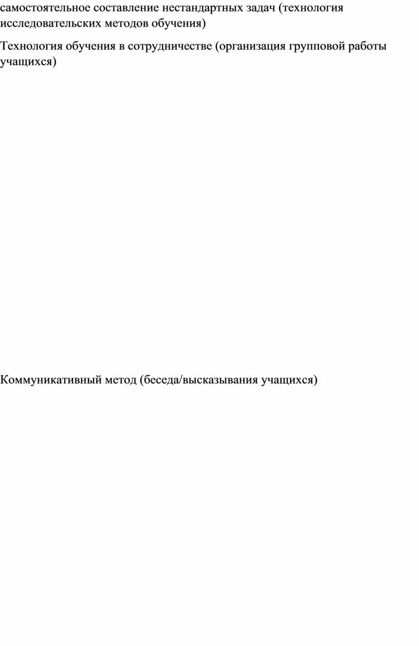 Аналитико-синтетический метод (выявление опознавательных признаков орфограммы) Исследовательский метод - задание на самостоятельное составление нестандартных задач (технология исследовательских методов обучения) Технология обучения в сотрудничестве (организация групповой работы учащихся)