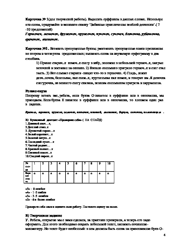 миниатюру. Но текст будет особенный: в нем должны быть слова на правописание букв О
