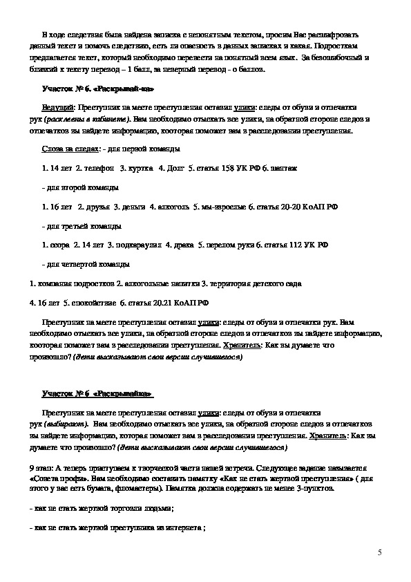 Ребята у нас произошло преступление! Вам нужно поскорее раскрыть его. Вот ваше задание. По