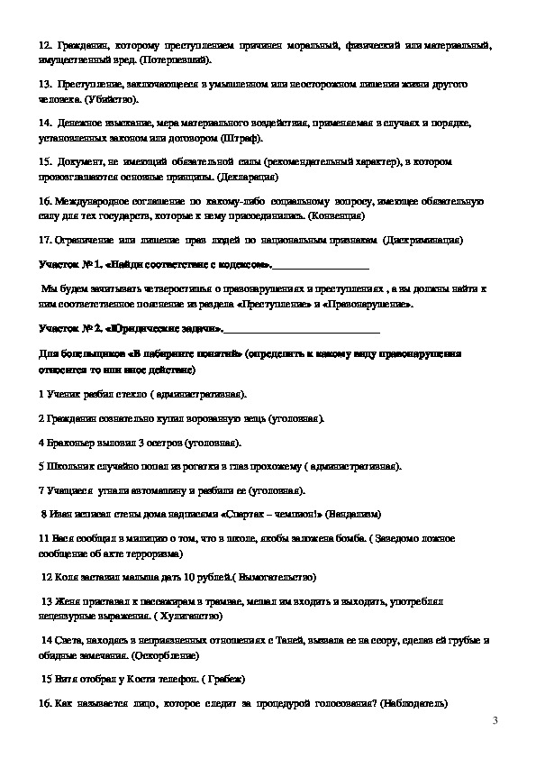 Для болельщиков «В лабиринте понятий» (определить к какому виду правонарушения