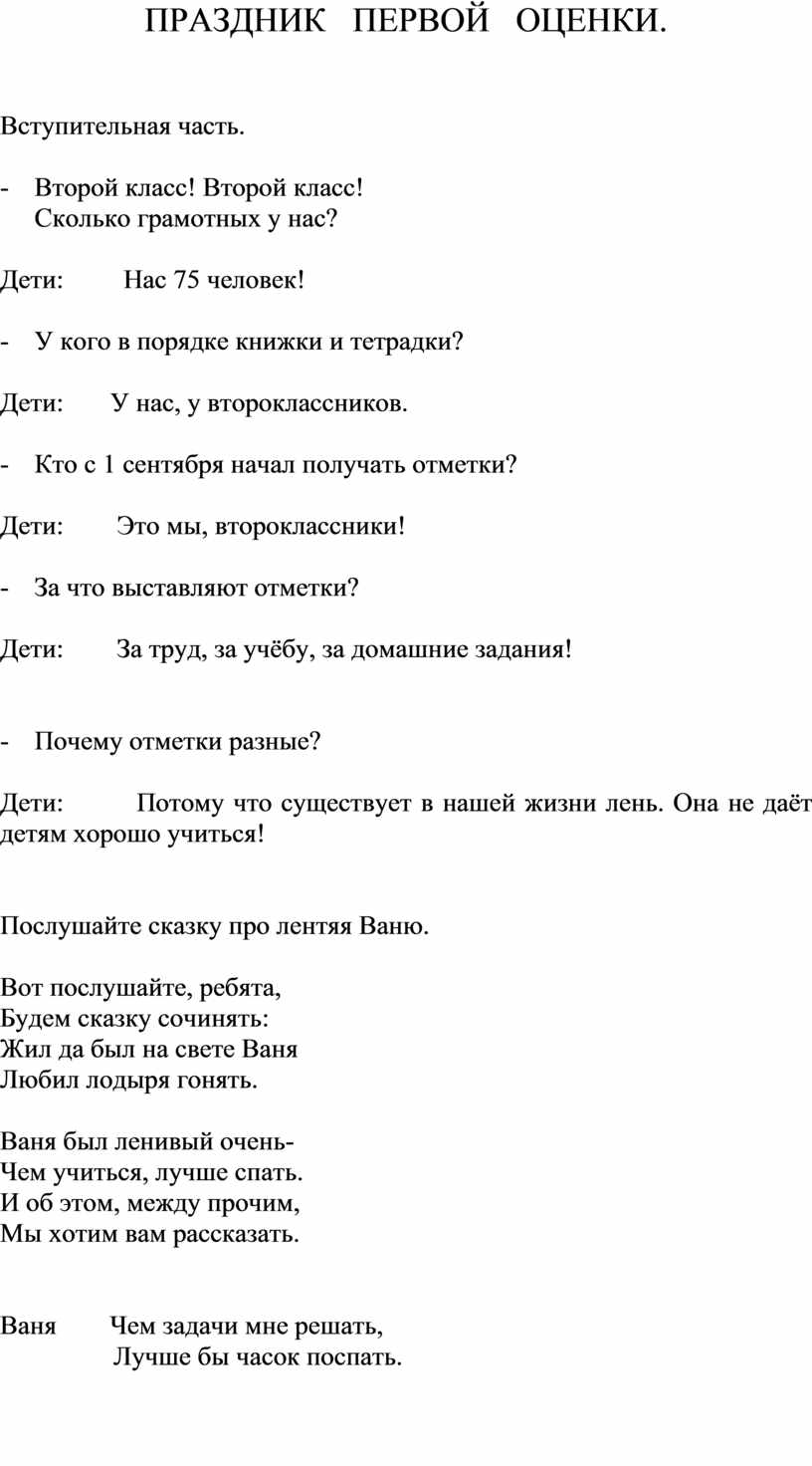 ПРАЗДНИК ПЕРВОЙ ОЦЕНКИ.