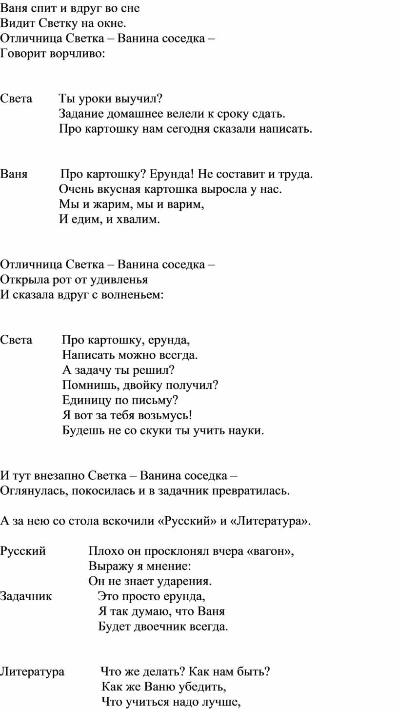 Ваня Про картошку? Ерунда! Не составит и труда.