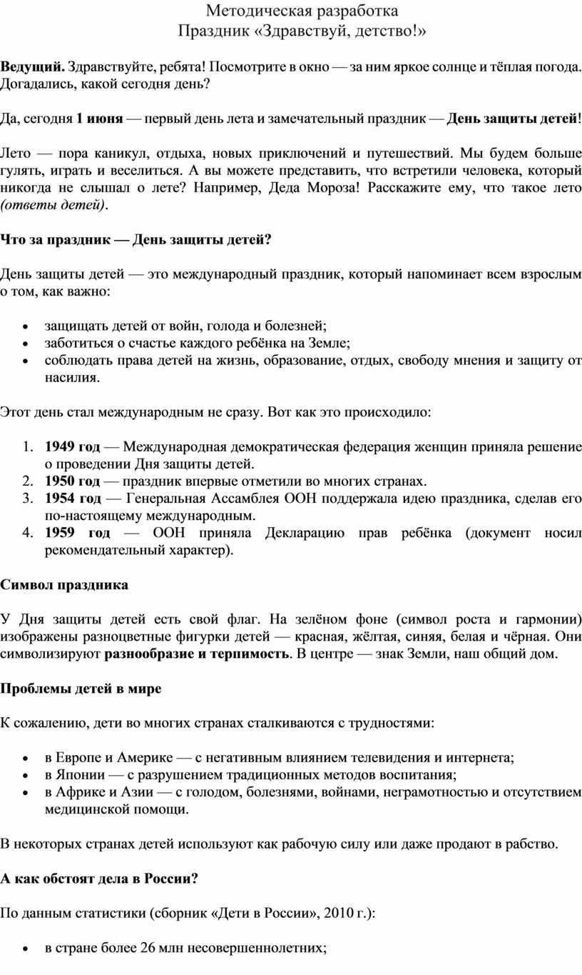 июня — первый день лета и замечательный праздник — День защиты детей!