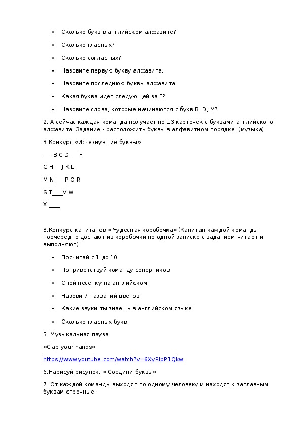 1.Конкурс «Разминка». Сколько букв в английском алфавите?