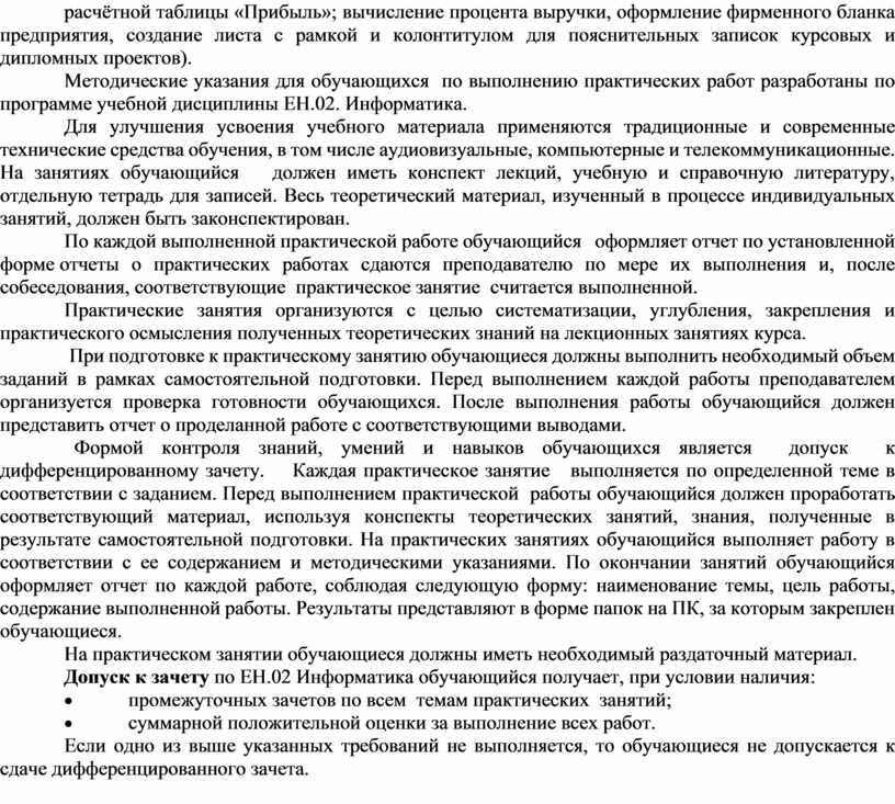 Допуск к зачету по ЕН.02 Информатика обучающийся получает, при условии наличия: