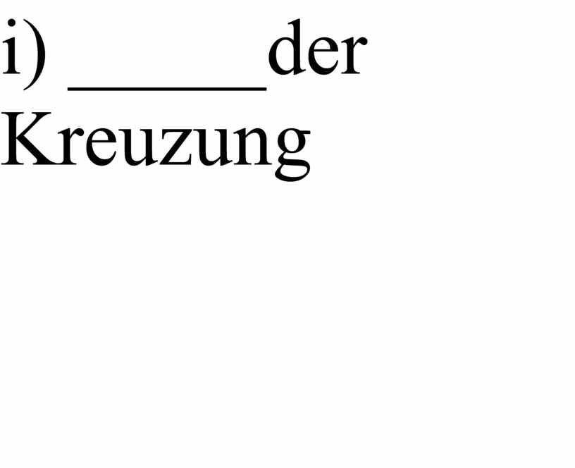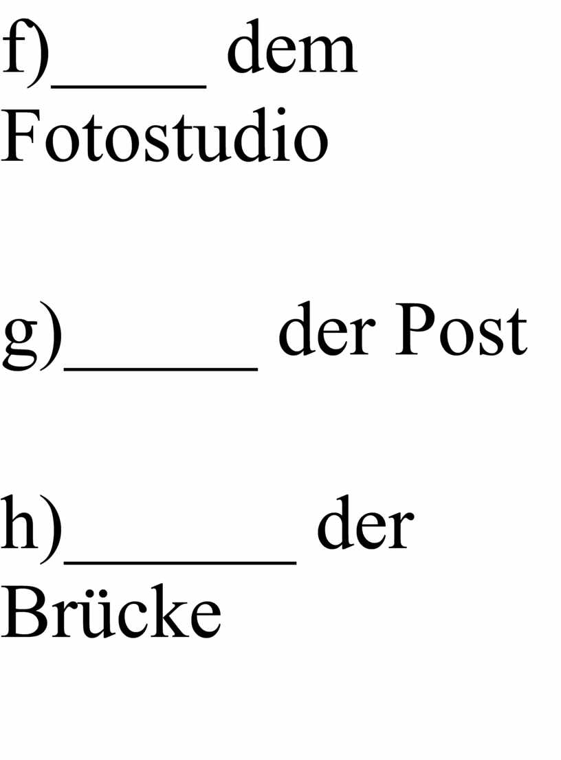c)_____ dem Supermarkt f)____ dem Fotostudio i) _____der Kreuzung