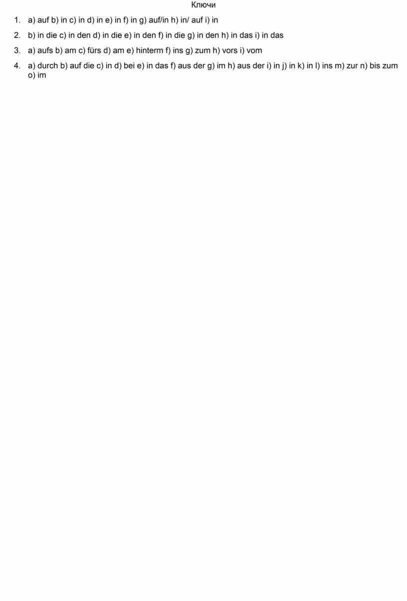 4. a) durch b) auf die c) in d) bei e) in das f) aus der g) im h) aus der i) in j) in k) in l) ins m) zur n) bis zum o) im
