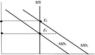Рис. 3.2.7. Равновесие на денежном рынке при изменении спроса на деньги