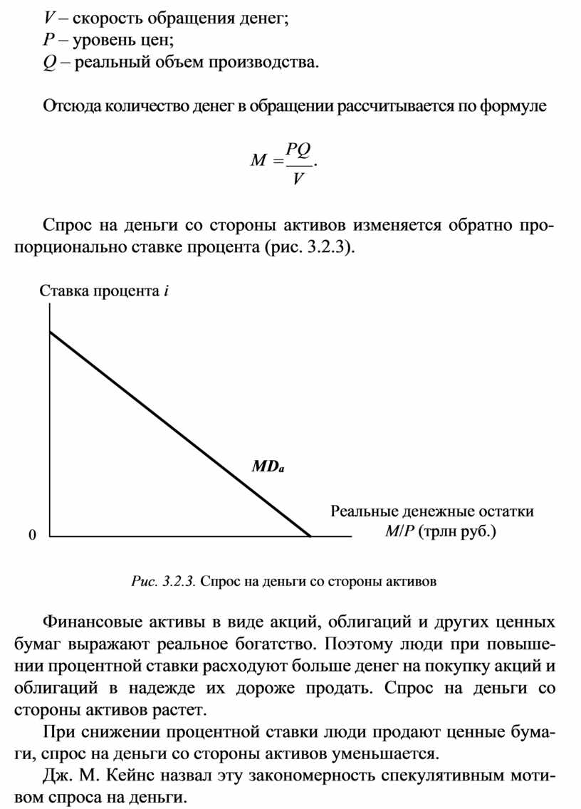 Спрос на деньги со стороны активов изменяется обратно про- порционально ставке процента (рис. 3.2.3).